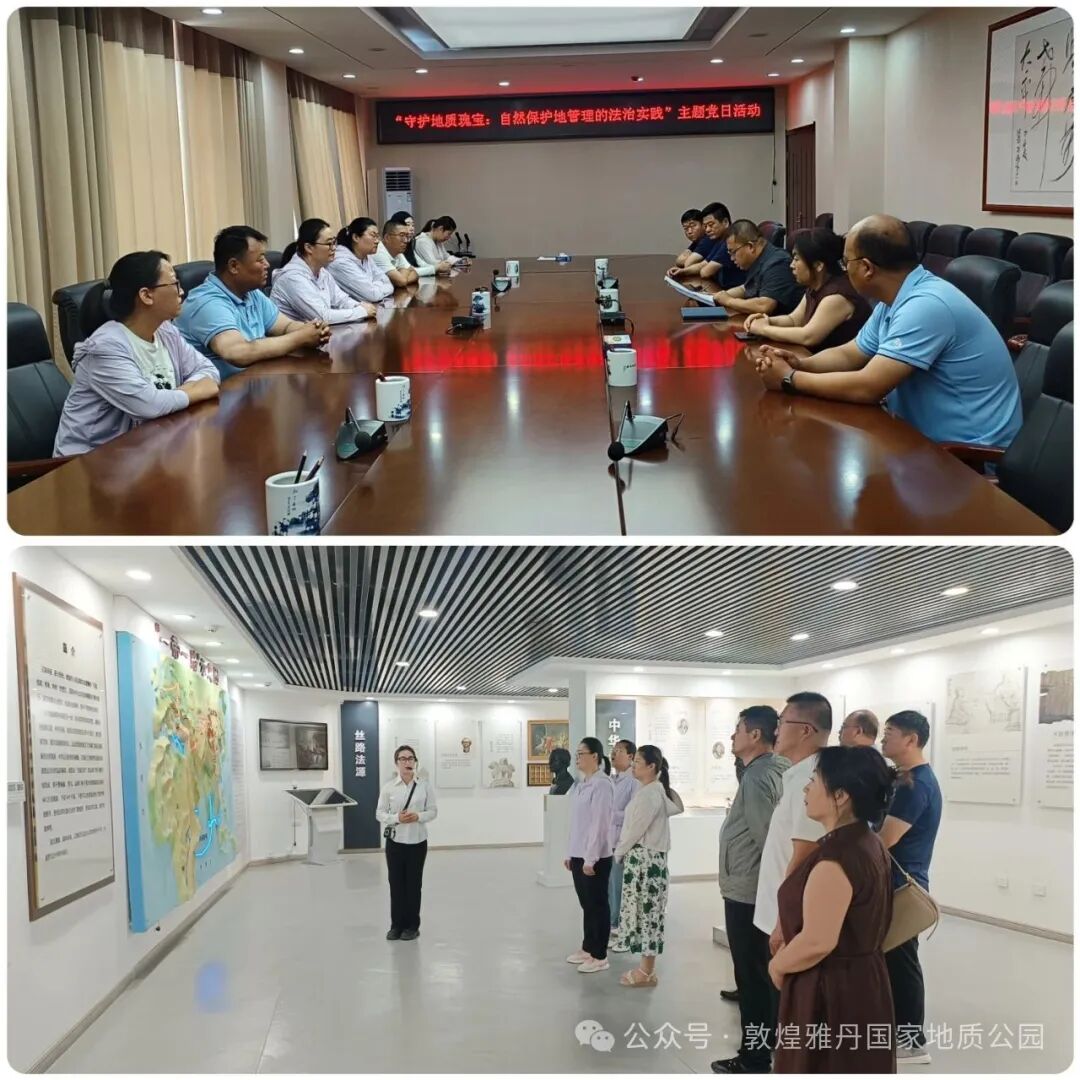7月9日,敦煌市雅丹景区服务中心党支部组织全体党员干部开展了“守护地质瑰宝:自然保护地管理的法治实践” 主题党日活动,通过“实地学习 + 专题普法”沉浸研学模式,筑牢生态保护法治防线。