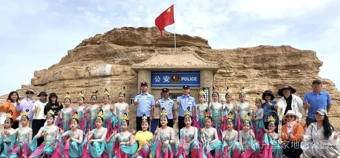 近日,在敦煌雅丹这片充满奇幻色彩的土地上,上演了一场别开生面的文化交流活动。北京市丰台区少年宫小星星舞蹈团在此进行研学期间,特别来到窑洞派出所前,为坚守岗位的民警们献上了精彩绝伦的敦煌舞表演,以独特的方式向守护这片土地的民警表达敬意。